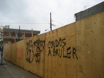 Faut-il brûler des condos?[ Un billet repris des St-Henri Chronicles ] Samedi 2 octobre 2010 Mise à part les lourds risques de peines pénales, nous ne croyons pas qu'une telle stratégie soit efficace sur le plan politique. Mais nous pouvons comprendre la colère qui amène certains de nos voisins d'exprimer ce désir.